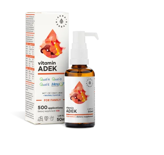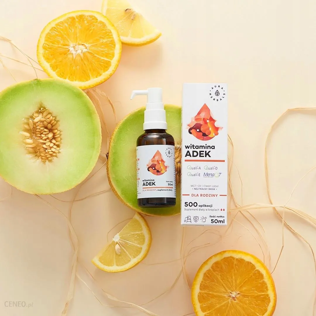 Vitamin ADEK của Aura Herbals là thực phẩm bổ sung dinh dưỡng toàn diện dạng giọt, cung cấp các vitamin thiết yếu A, D, E và K. Được thiết kế dành cho cả gia đình, sản phẩm hỗ trợ sức khỏe xương, hệ miễn dịch, da và mắt. Được bổ sung dầu MCT, sản phẩm đảm bảo sinh khả dụng cao của các thành phần hoạt tính. Vitamin ADEK, tức là vitamin A, D, E và K, đóng vai trò quan trọng trong nhiều quá trình sinh học. Vitamin A hỗ trợ sức khỏe mắt và hệ miễn dịch. Vitamin D rất cần thiết cho xương và răng chắc khỏe, do đó hỗ trợ chức năng hệ miễn dịch. Mặt khác, vitamin E hoạt động như một chất chống oxy hóa mạnh mẽ, bảo vệ tế bào khỏi stress oxy hóa. Vitamin K rất quan trọng cho quá trình đông máu và sức khỏe xương.
